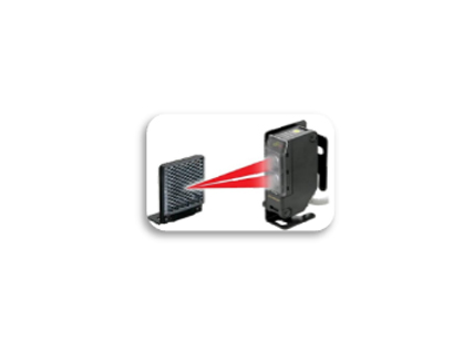 Photoelectric sensor produces a light (visible or infrared) from its light-emitting element. A reflective-type photoelectric sensor is used to detect the light beam reflected from the target. A thru beam type sensor is used to measure the change in light quantity caused by the target crossing the optical axis.